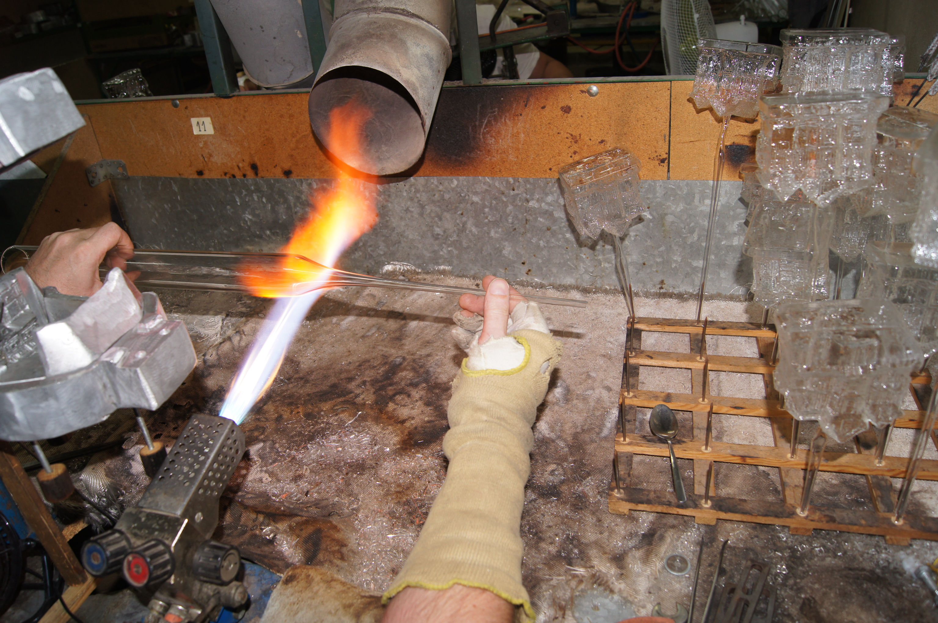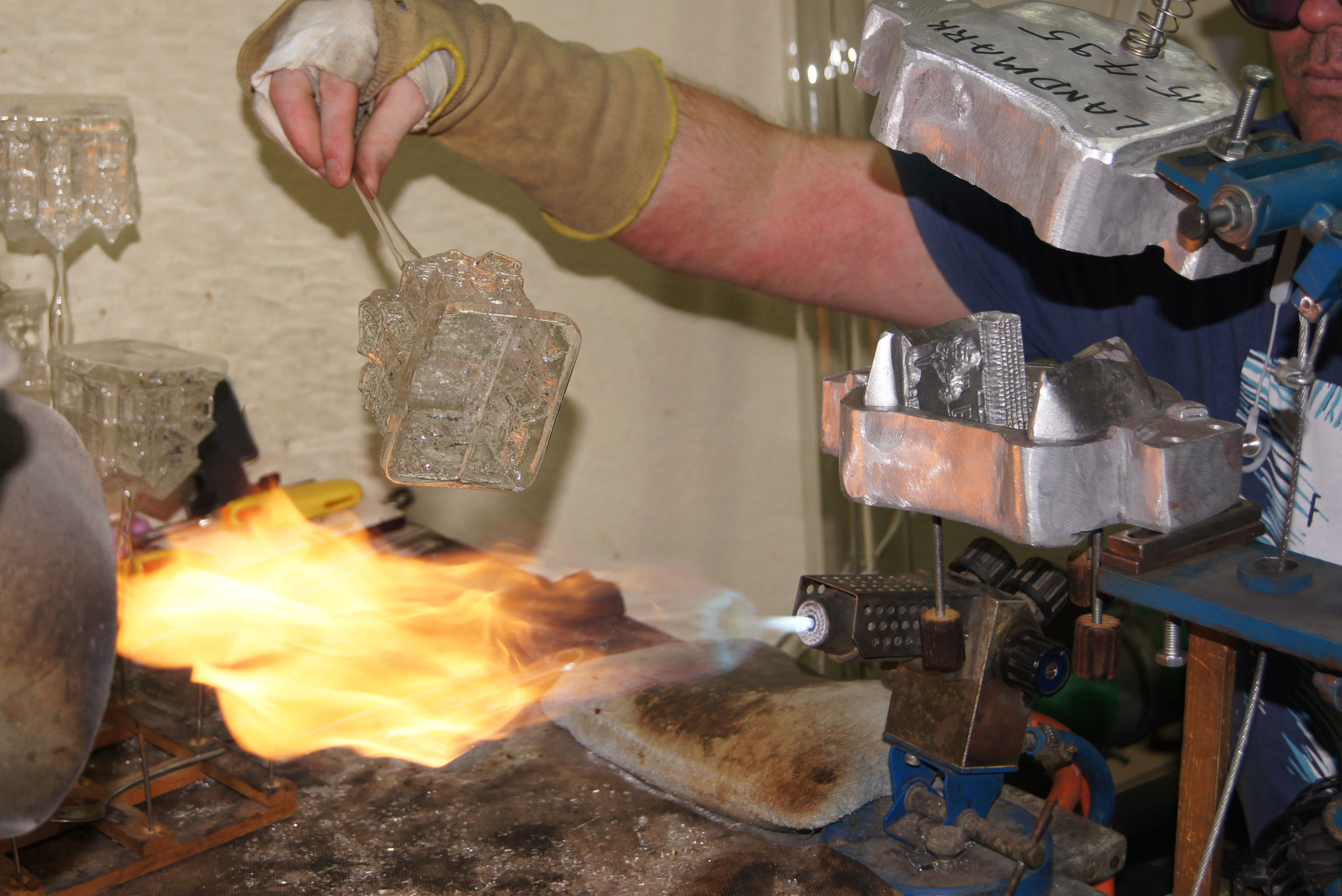 One removed from the mold, the glass is carefully manipulated so that as it cools, the shape is held.