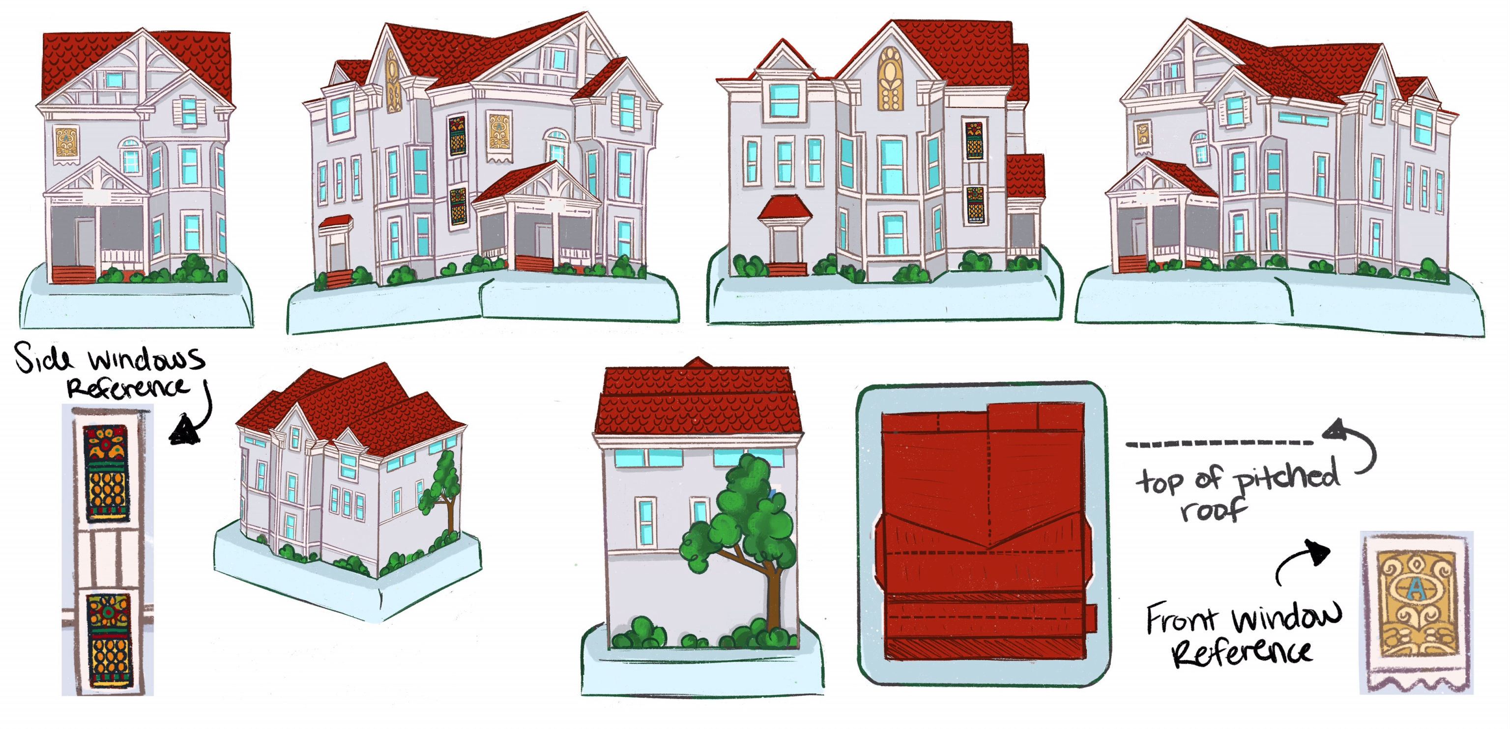 Joellen’s designs are drawn on paper, first as a black and white sketch, and then rendered into a 3-D color design. The completed artwork is sent, along with the color and glittering specifications, to one of our makers in Europe.